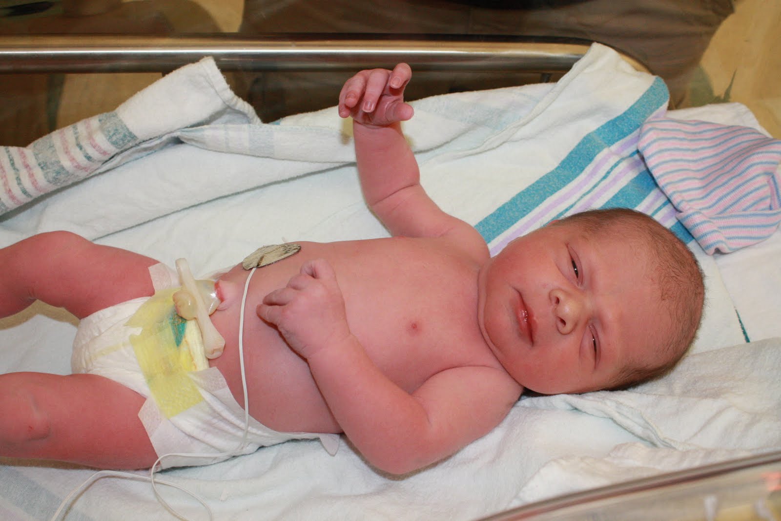 Ten minutes after arriving home I started to feel slight cramping, which I attributed to the checkup from the nurse at the hospital. Then the cramping turned into very strong contractions, much stronger than I had with Emily. Brian and I started timing them and they were two minutes apart and approximately 40 seconds long. We called the doctor and headed to the hospital going 90 mph with our hazards on the whole way. I tried to focus on the pain and kept my eyes closed the whole way while Brian ate half a bag of gummy bears to keep calm. I just kept thinking how long it was going to take to re-admit back into the hospital, get me in a room, hook me up to IV's and then get an epidural. I wasn't sure I was going to be able to get through the pain while waiting for the nurses to do what they needed to get done.